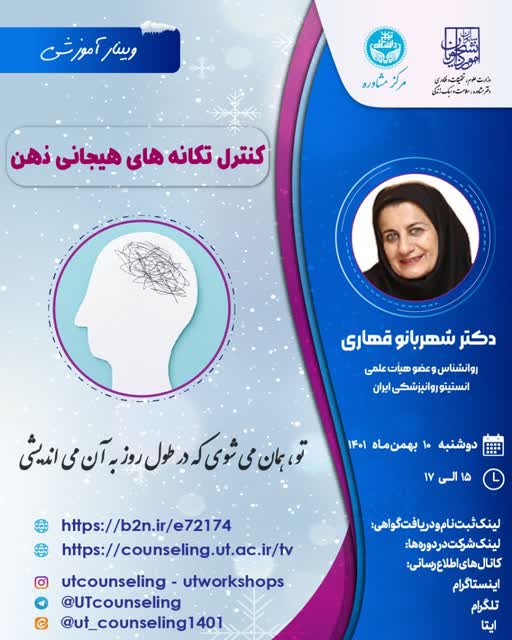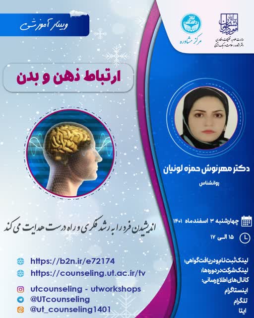 مرکز مشاوره و سبک زندگی دانشگاه اراک با همکاری دفتر مشاوره و سلامت وزارت علوم برگزار می کند: