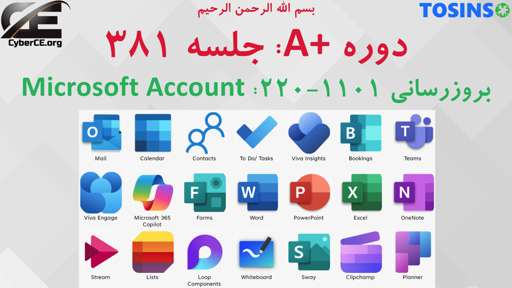 در جلسه 381 از دوره آموزشی A+ (دوره A+) می پردازیم به آشنایی با حساب کاربری Microsoft (Microsoft Account)، Microsoft 365 و کاربرد های آن.