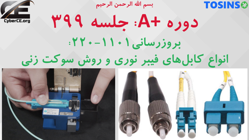 در جلسه 399 از دوره آموزشی A+ (دوره A+) می پردازیم به آشنایی با اتصال دهنده های فیبر نوری (ST، SC و LC).