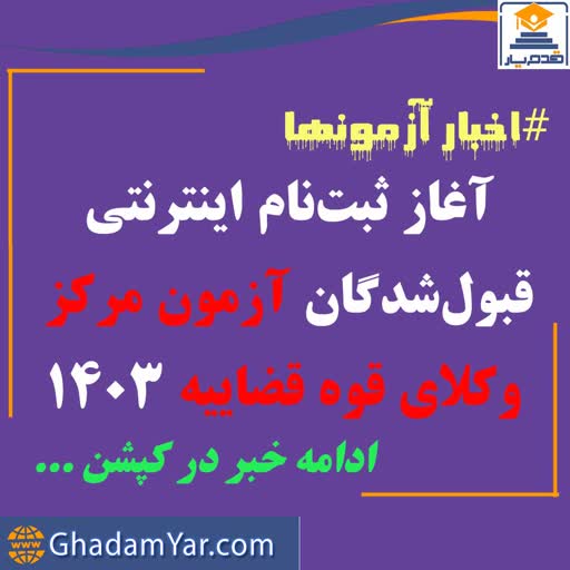 به گزارش قدم یار، آزمون وکالت مرکز وکلای قوه قضاییه ۱۴۰۳ روز پنجشنبه ۲۲ آذر ماه.....