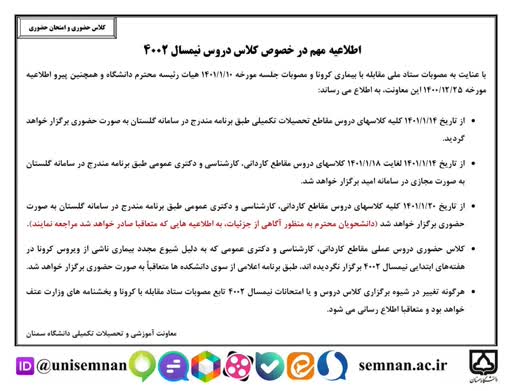 ⭕️ قابل توجه کلیه دانشجویان عزیز #دانشگاه_سمنان